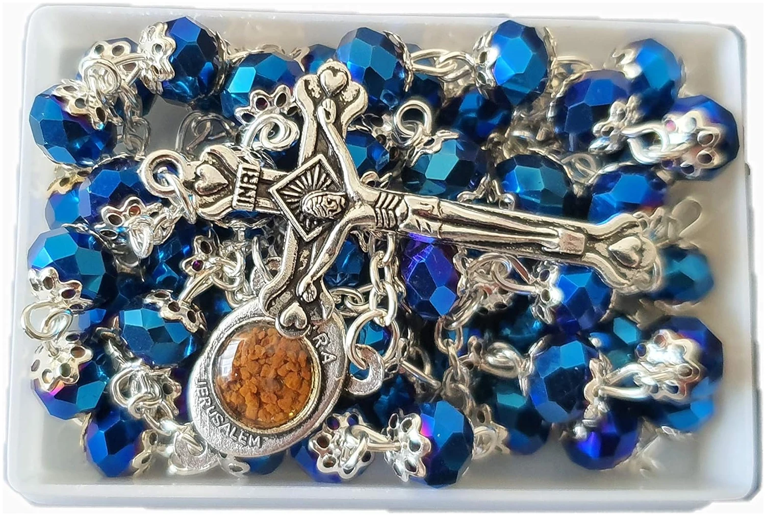 Rosary was very nice. I was concerned because necklace was mentioned in the description and I did not want it to have a clasp. The rosary was in a very nice clear covered little hard plastic container. Made a pretty gift.